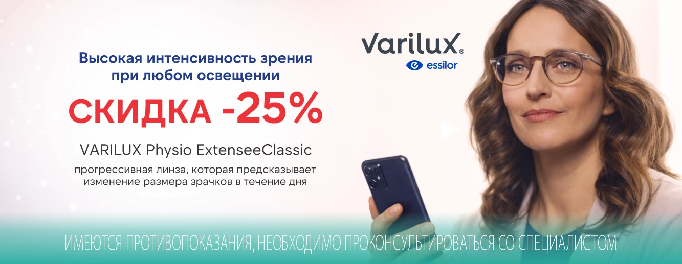 Скидка -25% на прогрессивные линзы Varilux Physio ExtenseeClassic