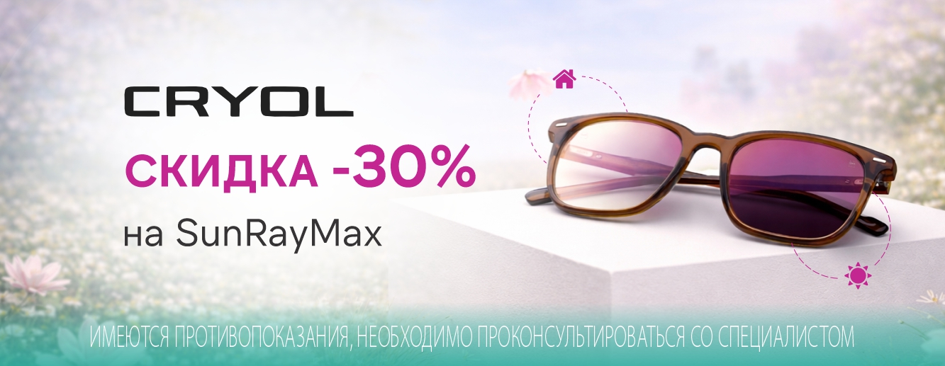 Скидка 30% на очковые линзы Cryol SunRayMax