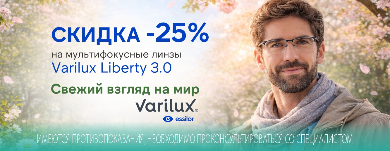 Скидка -25% на мультифокусные линзы Varilux Liberty 3.0